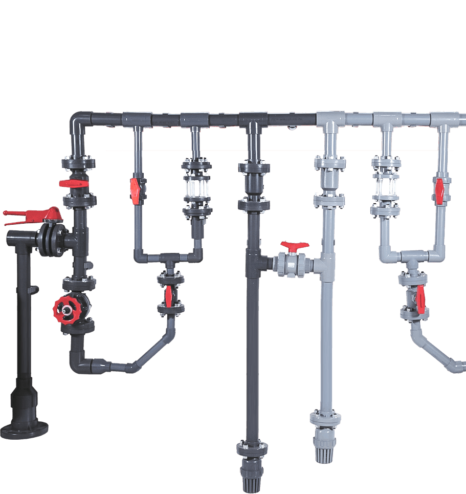 專業(yè)生產三大系列產品(閥門、管材/管件、泵)&五種材料(CPVC、UPVC、PVDF、PPH、FRPP)